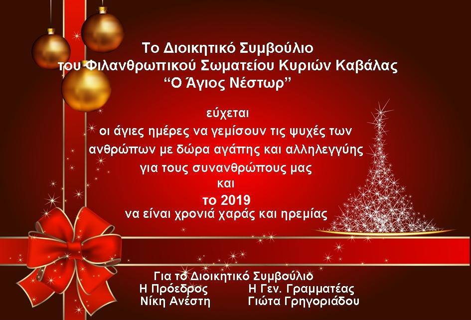 Ευχόμαστε σε όλους Καλά Χριστούγεννα, Δημιουργικό και Ειρηνικό το 2019.