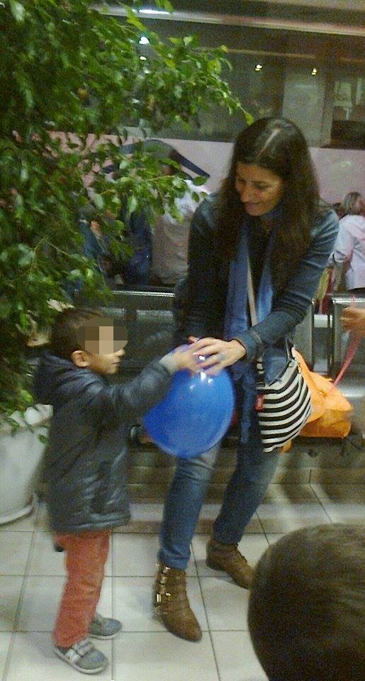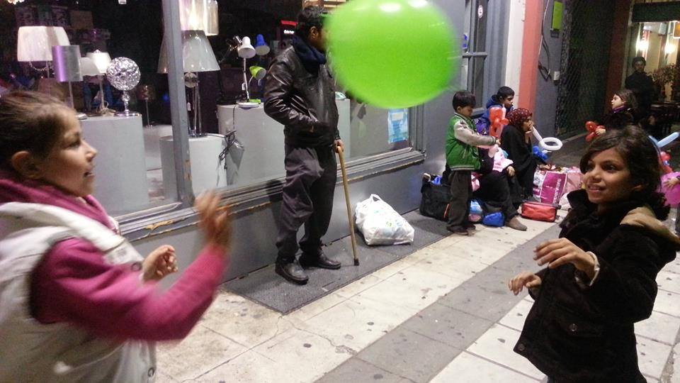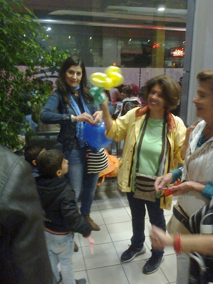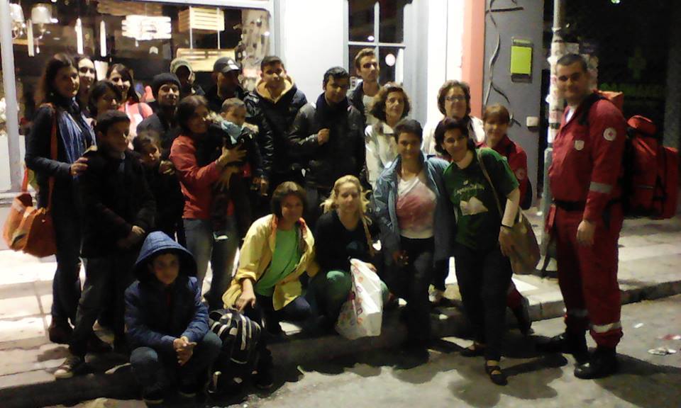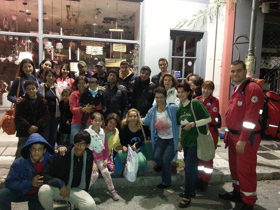 Ήρθε μετά από λίγο και η Μαρία, η μεταφράστρια από το ΚΤΕΛ. Μίλησε μαζί τους καθώς η Αδέλα προσπαθούσε να βρει μια λύση για να μην μείνουν αυτοί οι άνθρωπο στον δρόμο μέχρι το πρωϊ που περίμεναν να τους έμπαιναν χρήματα στην τράπεζα και να μπορέσουν να συνεχίσουν το ταξίδι τους. Έβλεπα τα παιδιά να συνεχίζουν να παίζουν με τα μπαλόνια. Ένας μπομπιράκος είχε βάλει ένα στο κεφάλι του σαν στεφάνι και κρατούσε άλλα δύο στα χέρια. Είδα την Μαρία να κλαίει… Την ρώτησα γιατί και μου είπε ότι την συγκίνησε η κουβέντα μαζί τους….Είχαμε μαζευτεί αρκετοί εθελοντές και τελικά βρέθηκε μέρος για να πάνε να κοιμηθούνε. Ας είναι καλά ο Σύλλογος Πεντακοσίων που άνοιξε την πόρτα του συλλόγου τους και μπορέσαμε να τους πάμε εκεί. Ακόμα και η Λέσχη Αξιωματικών έστειλε σάντουϊτς για να φάνε. Πήραμε 3 ταξί να τους πάμε στον χώρο που θα περνούσαν το βράδυ. Ήθελαν να πληρώσουν το ταξί και επέμεναν. Δεν τους αφήσαμε. Εξάλλου το ταξί δεν δέχτηκε να πάρει χρήματα!