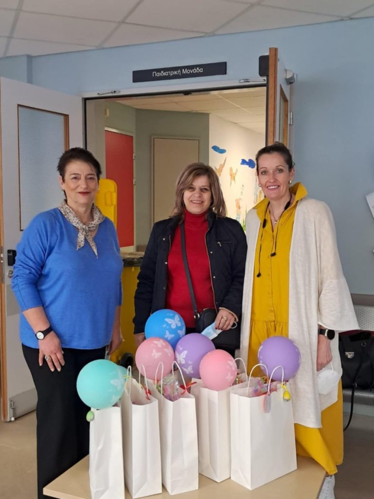 Την Παρασκευή 11/4/25 το πρωί ενόψει των ημερών της Μ. Εβδομάδας, των παθών και της Ανάστασης του Κυρίου, ημερών αγάπης και σκέψης για τους συνανθρώπους μας που έχουν προβλήματα υγείας, το Φιλανθρωπικό Σωματείο Κυριών Καβάλας «Ο Άγιος Νέστωρ» βρέθηκε στην Παιδιατρική κλινική του Νοσοκομείου μας και πρόσφερε πασχαλινά δωράκια στους μικρούς ασθενείς. Στην επίσκεψη ήταν η Πρόεδρος Κα Niki Anesti και μέλη Δ.Σ. οι κυρίες Eleni Psirouki και Μαρία Γκιούσου. Ευχηθήκαμε στα παιδιά και στις μητέρες συνοδούς γρήγορη ανάρρωση και να επιστρέψουν υγιή στα σπίτια τους !!!