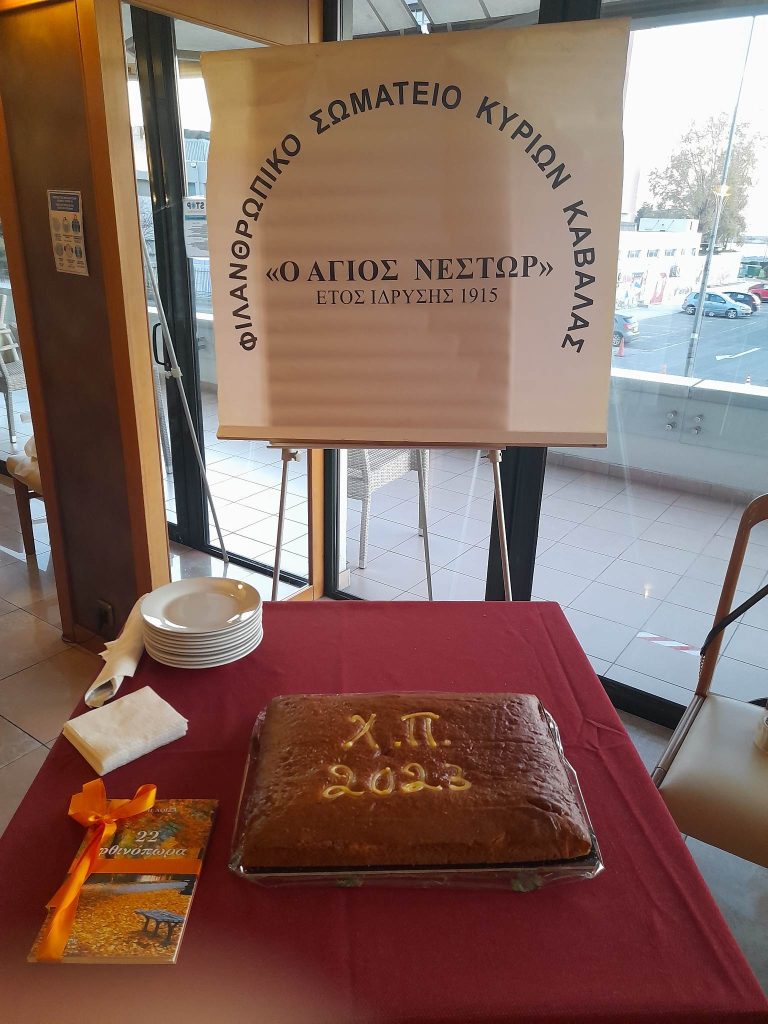 Την Τετάρτη 01-2-2023 πραγματοποιήθηκε η εκδήλωση του Φιλανθρωπικού Σωματείου Κυριών Καβάλας “Ο ΑΓΙΟΣ ΝΕΣΤΩΡ” στο ξενοδοχείο ΕΣΠΕΡΙΑ. Το πρόγραμμα προέβλεπε κοπή βασιλόπιτας, ετήσια τακτική Γενική Συνέλευση και εκλογές.