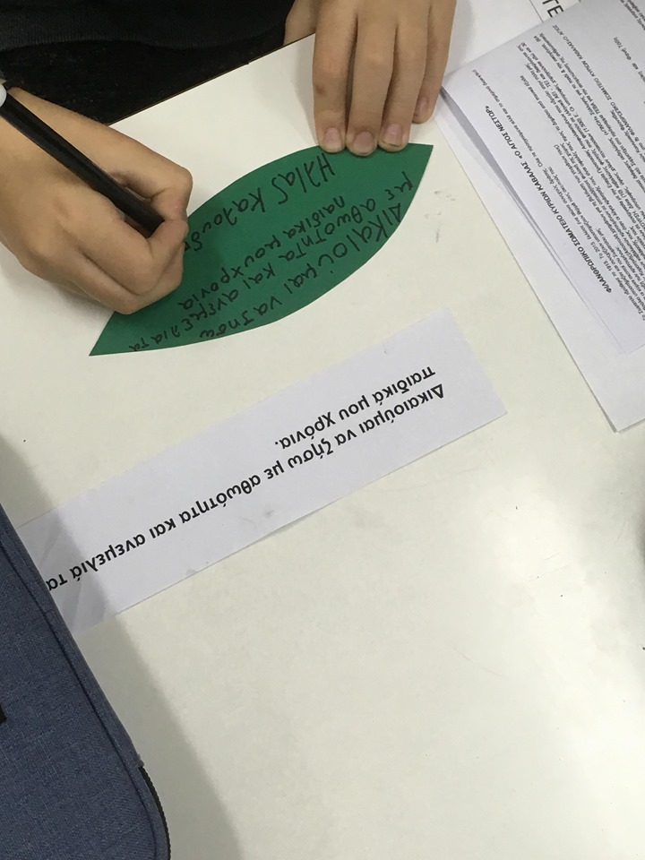Συναντήσαμε περίπου 30 μαθητές της Δ΄ & Ε΄ τάξης. Ξεκινήσαμε μιλώντας τους για την Παγκόσμια ημέρα και αν γνώριζαν κάτι γύρω από αυτή. Πρόθυμα τα παιδιά πήραν μέρος στο διάλογο και όπως πάντα μας εξέπληξαν με την προσοχή τους και με τις απαντήσεις τους.