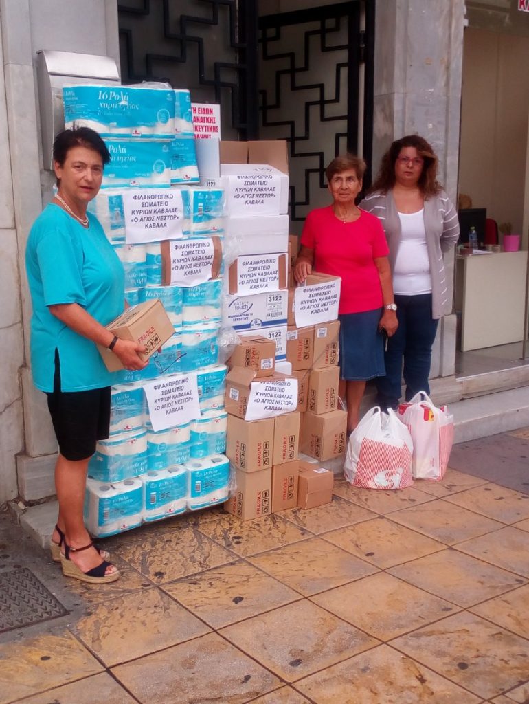 Το Διοικητικό Συμβούλιο του Φιλανθρωπικού Σωματείου Κυριών Καβάλας ” Ο ΑΓΙΟΣ ΝΕΣΤΩΡ” επιθυμώντας να βοηθήσει τους πληγέντες στην Αττική ήδη προχώρησε στην αγορά ειδών πρώτης ανάγκης αξίας 650 Ε.